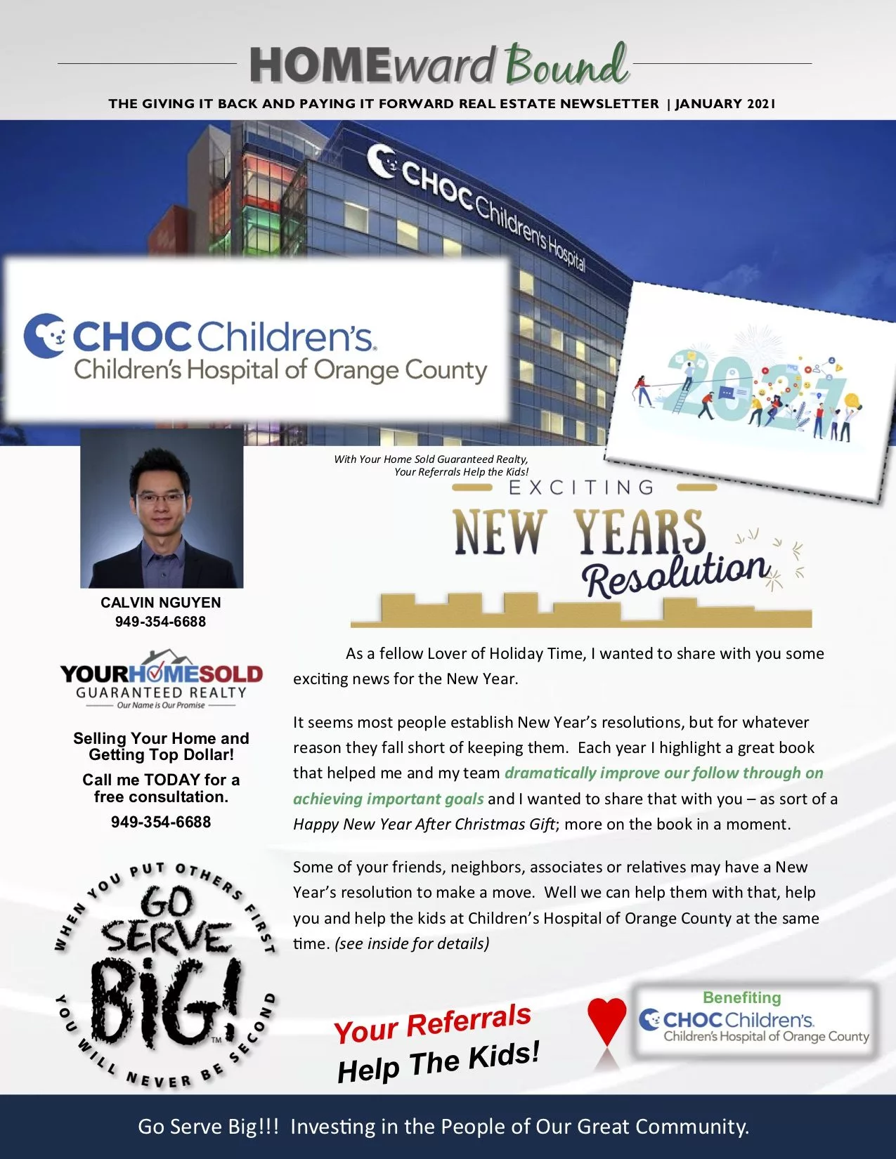 Some of your friends, neighbors, associates or relatives may have a New Year’s resolution to make a move. Well we can help them with that, help you and help the kids at Children’s Hospital of Orange County at the same time.