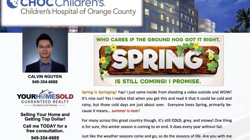 Just like last year, we are on a mission to raise $25,000 for Children’s Hospital of Orange County. We do this by donating a portion of our income from homes we sell. As you know Children’s Hospital of Orange County does great work in helping kids fight through and survive nasty life-threatening diseases like cancer, Non-Hodgkin’s lymphoma, leukemia and others.