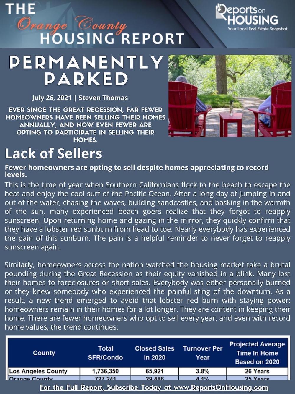 The lack of supply and years of red-hot demand, juiced by record low interest rates (especially since the start of the COVID-19 pandemic), has resulted in homes appreciating to record levels in Orange County, erasing the losses and sting of the Great Recession entirely. This more than a decade long trend is now the norm. Homeowners are not moving as often as they used to.