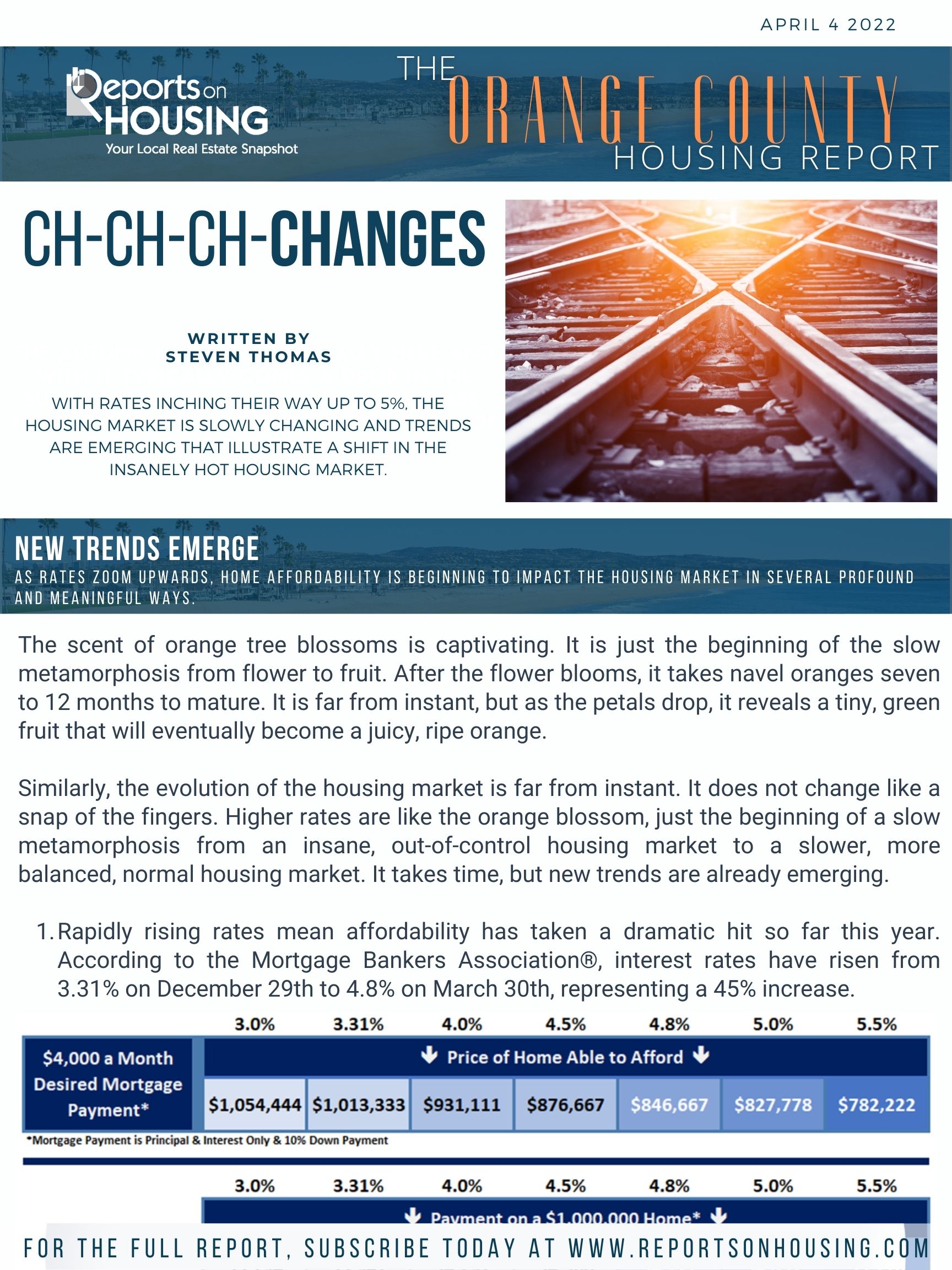 The Orange County housing market has been running at an insane pace since July 2020. Yet, with mortgage rates climbing from 3.31% at the end of December to 4.8% today, new trends have emerged that will ultimately lead to a market downshift as long as higher rates endure.